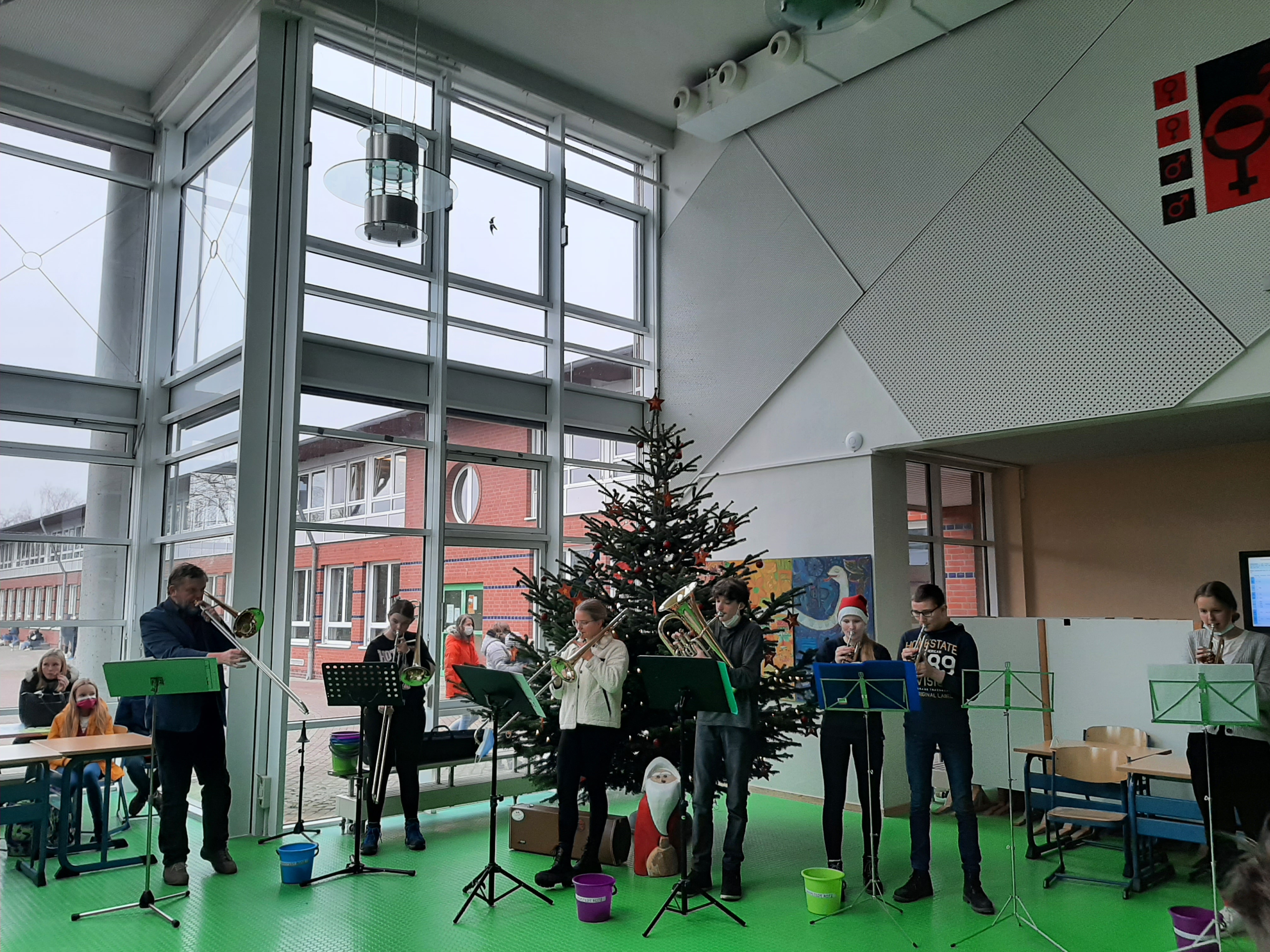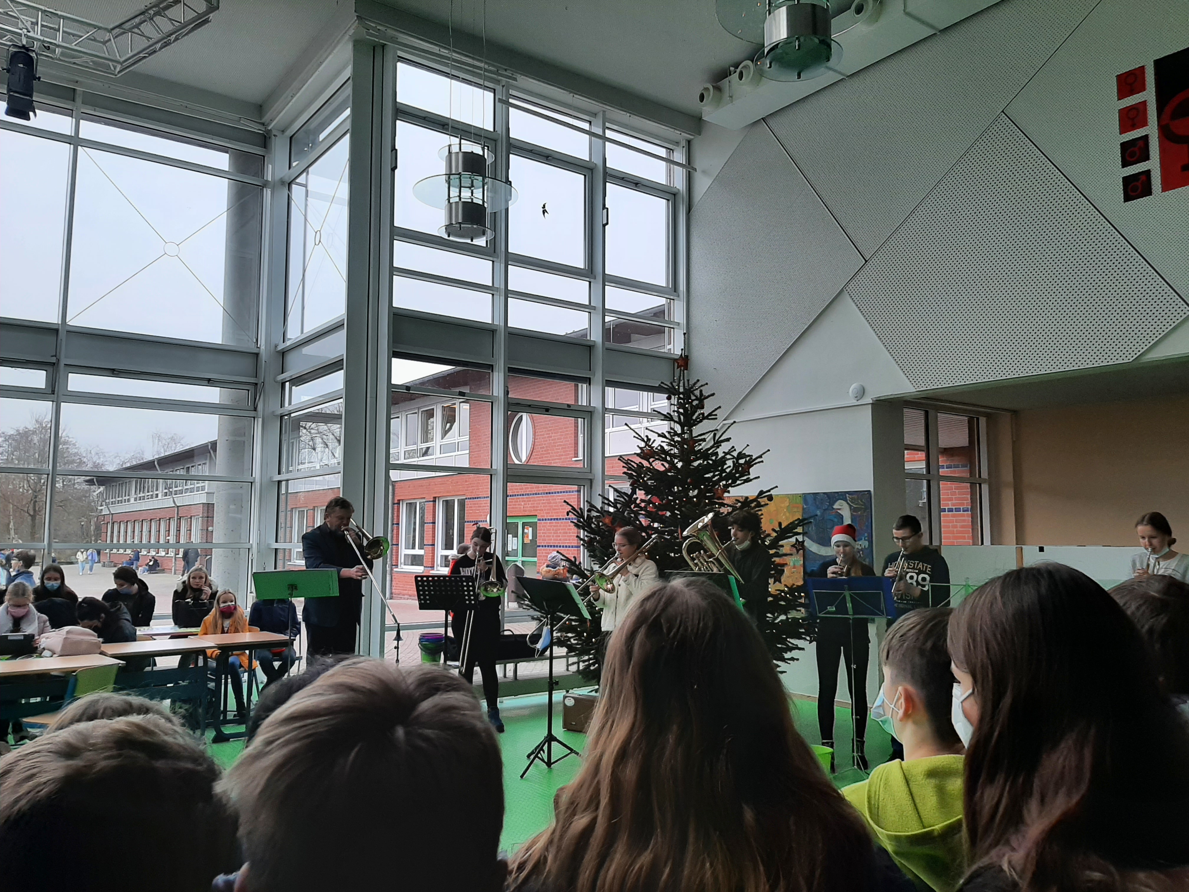 "Let it snooow..." - In der Nikolauswoche verließ niemand die Pausenhalle ohne Ohrwurm, denn Barmstedt Brass sorgte bei einem Pausenkonzert endgültig für Weihnachtsstimmung.