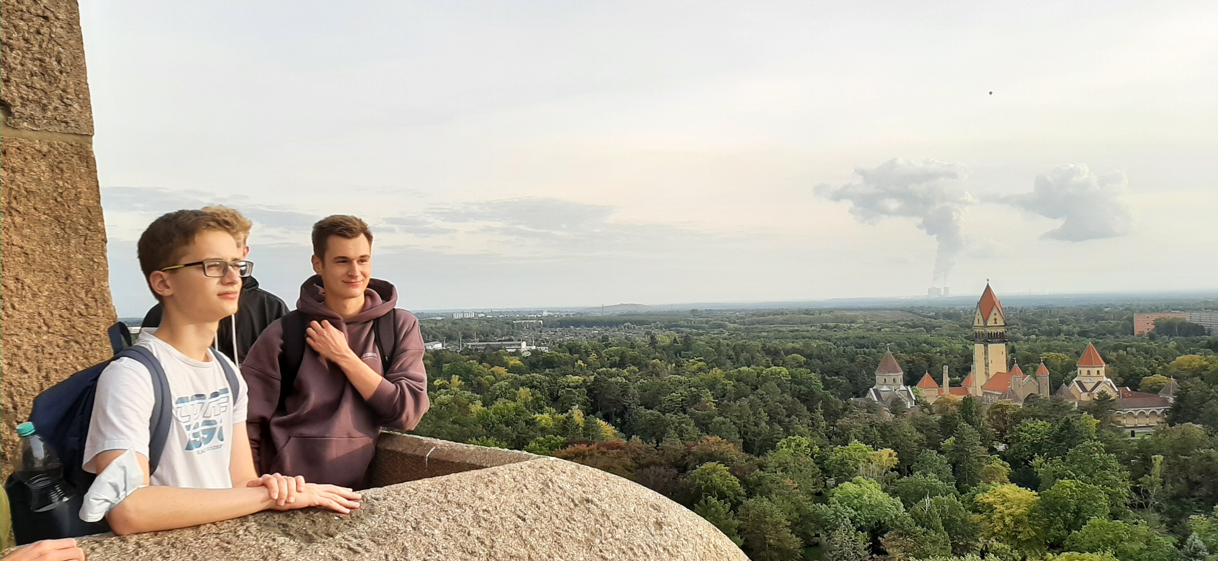 Nach dem Besuch der Ausstellung fuhren wir mit der Straßenbahn zum Völkerschlachtdenkmal. Von dort aus stiegen wir auf zur Aussichtsplattform, welche einen beeindruckenden Panoramablick auf Leipzig bietet. Die über 300 Stufen und der enge Aufgang machte dem ein oder anderen bereits zu schaffen, weshalb wir nach einer kurzen Aufklärung Bäumis über die Völkerschlacht in Leipzig und das Denkmal den Rückweg in die Innenstadt antraten, um den restlichen Abend in Leipzig zu genießen und essen zu gehen. Am späten Abend fuhren wir anschließend alle gemeinsam mit der Bahn zurück nach Dresden.