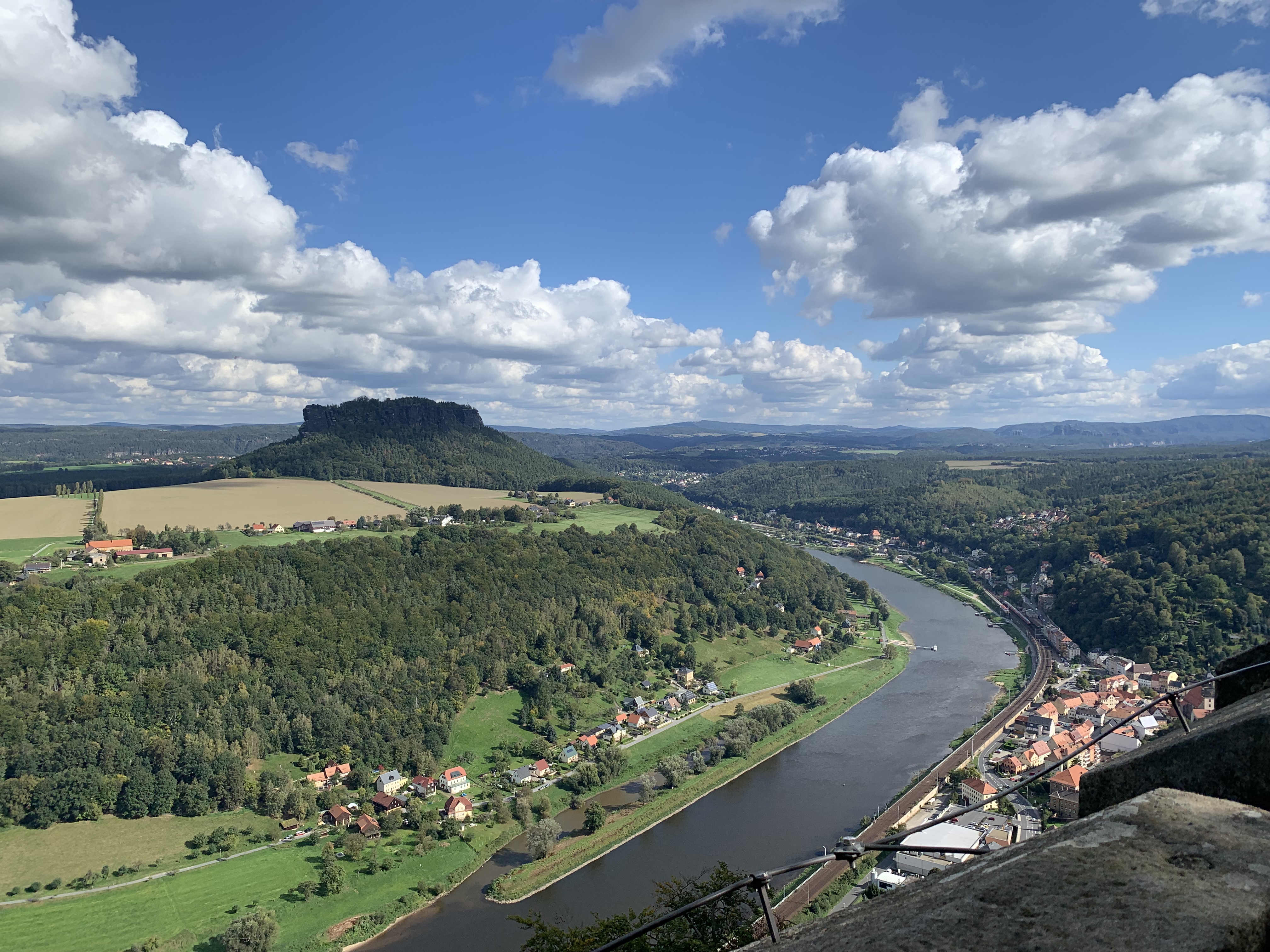Da war es auch schon Donnerstag; der letzte wirkliche Tag unserer Studienfahrt, den wir hauptsächlich außerhalb von Dresden verbrachten. Morgens ging es mit der Bahn los in Richtung Königstein und in die Gegend des Elbsandsteingebirges. Nach einer ungefähren halben Stunde erreichten wir bereits den Bahnhof, um uns kurz danach auf den Wanderweg zur Festung Königsstein zu begeben. Auf diesen Marsch und erster kurzer Freizeit auf dem Festungsgelände folgte auch schon die Führung. Mit großer Mehrheit entschied sich der Kurs für die Spezialisierung auf die Artillerie und den Festungsbau an sich; also auf die militärische Funktionsweise. So lernten wir viele Details zur Ortswahl, der Bauweise und den damit verbundenen Verteidigungsstrukturen im Ernstfall. Nach der durchaus interessanten Führung durch die Festung, welcher als solche übrigens bereits der Festungsstatus aberkannt wurde, stärkte sich der größte Teil des Kurses beim hauseigenen Restaurant. Die Wanderung zurück zum Bahnhof stand nun an und nach dortiger Ankunft fuhren wir zunächst nur zwei Stationen zurück, um in der Stadt Wehlen auszusteigen und einen Gasthof namens „Bauernhäus`I" mit Blick auf die Elbe zu besuchen. Daraufhin ging es zurück nach Dresden und der restliche Nachmittag und frühe Abend wurde vorwiegend wieder für Restaurantbesuche verwendet. Der vorletzte Stopp des Tages war dann der „,UFA-Kristallpalast" in Dresden; ein Kino, in welchem wir den neuen „James Bond" anschauten und zur Abrundung war unser letzter Treff ein Irish Pub mit dem Namen „Shamrock".