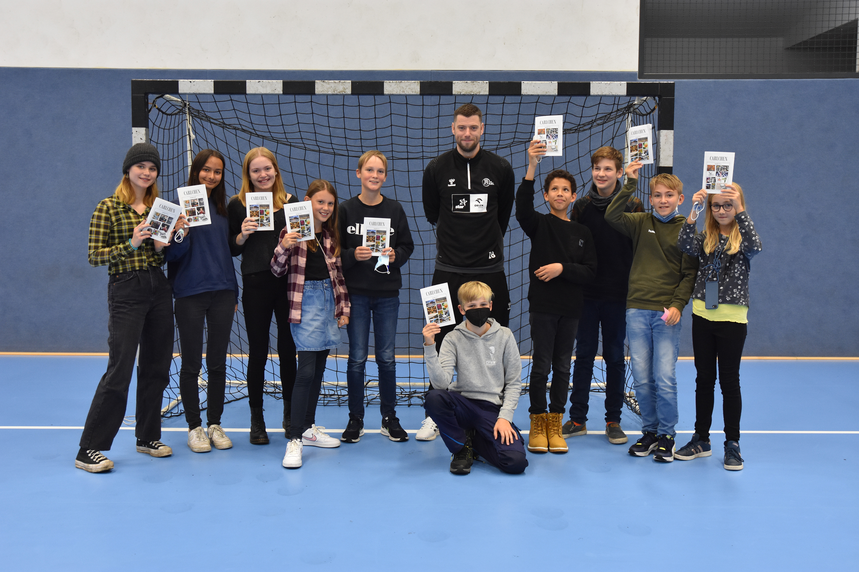 Gerade unsere CARLCHEN-Mitglieder, die selbst Handball spielen, hofften natürlich auf entscheidende Tipps vom Vollprofi. Und der riet dazu, nie den Spaß aus den Augen zu verlieren, sowohl beim Spiel als auch bei Training. Die lange Corona-Zwangspause für den Handballnachwuchs betrachtete er sogar als Chance: Pausen, so erläuterte er, verschafften Zeit, über das eigene Spiel nachzudenken und sich zu reflektieren. „So habe ich das noch nicht gesehen!“, gab unser Redaktionsmitglied Mick, auch Handballer, zu.