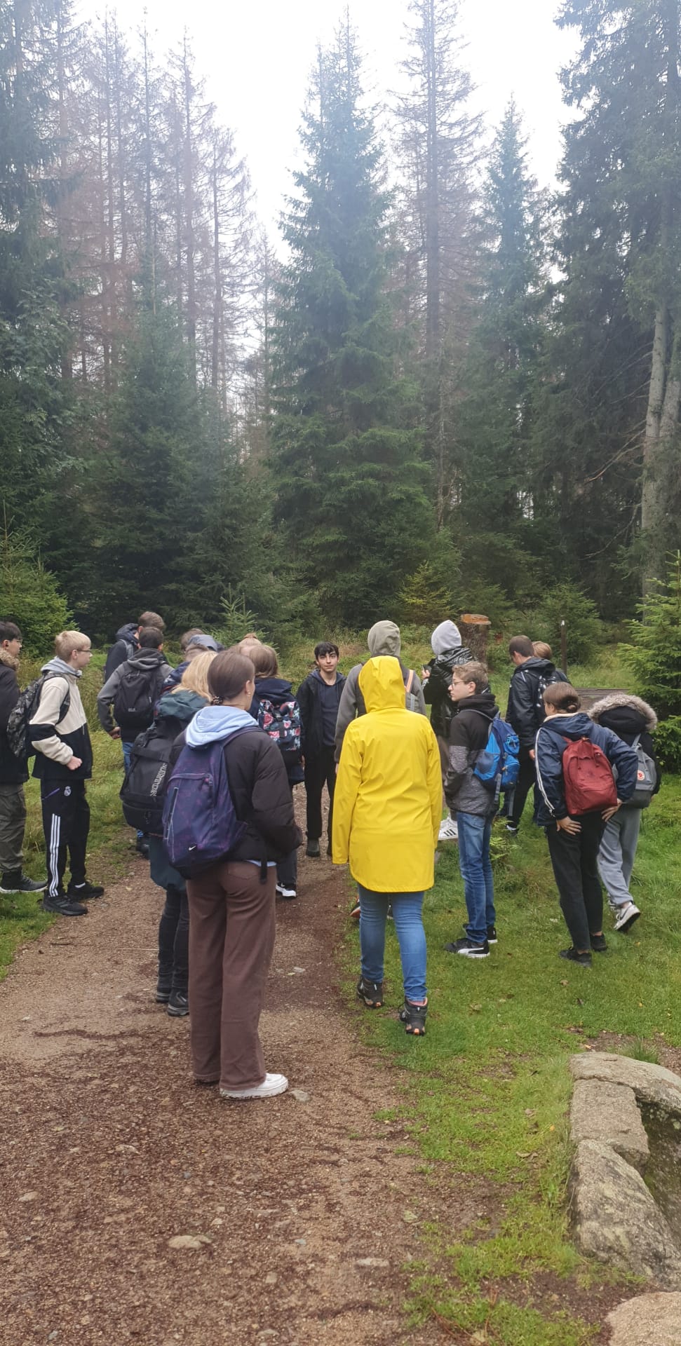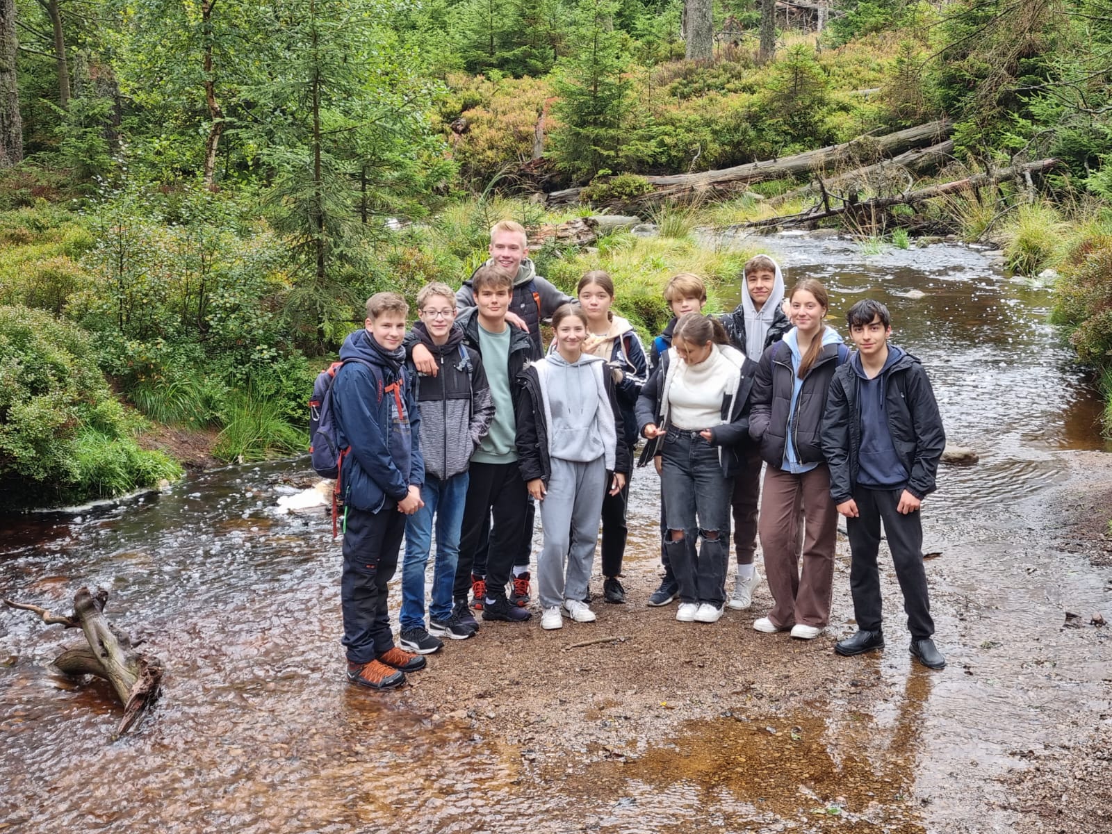 Heute ist bereits der 3. Tag, gestern hat die Klasse ihre Naturkenntnisse und Wetterfestigkeit bei der „Oderteichrallye“ gezeigt, die uns teils bei schönem Wetter und teils bei strömenden Regen in 13.5 Kilometern durch die faszinierende Landschaft des Nationalparks Harz geführt hat.