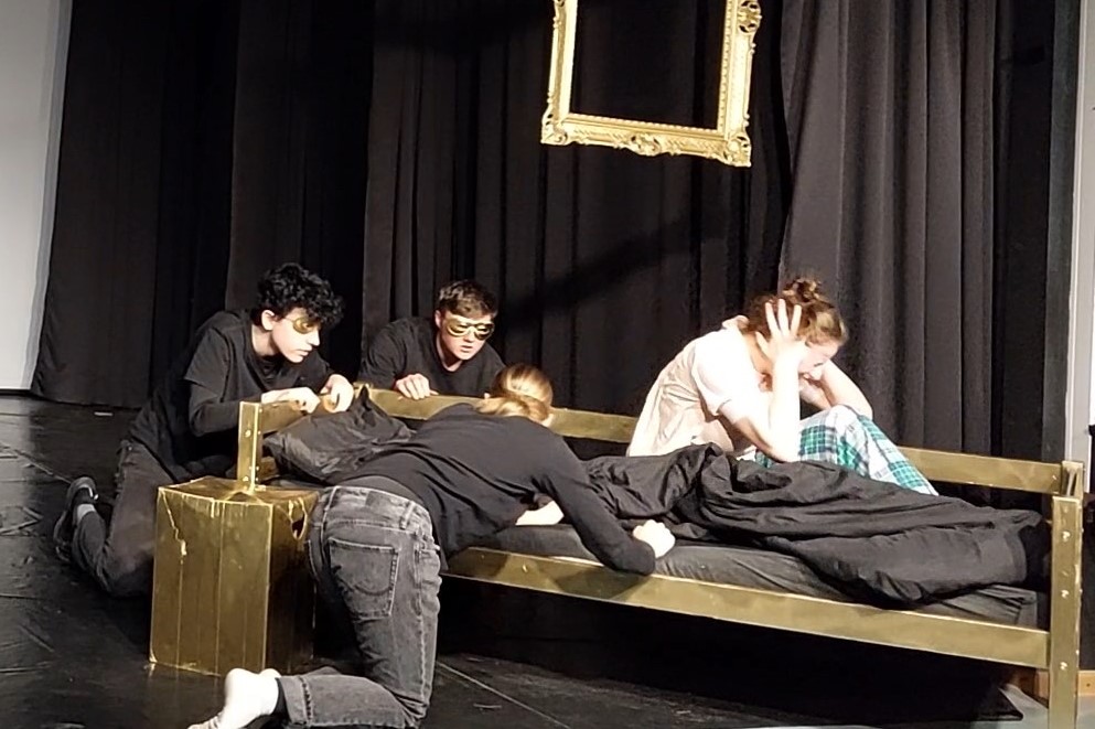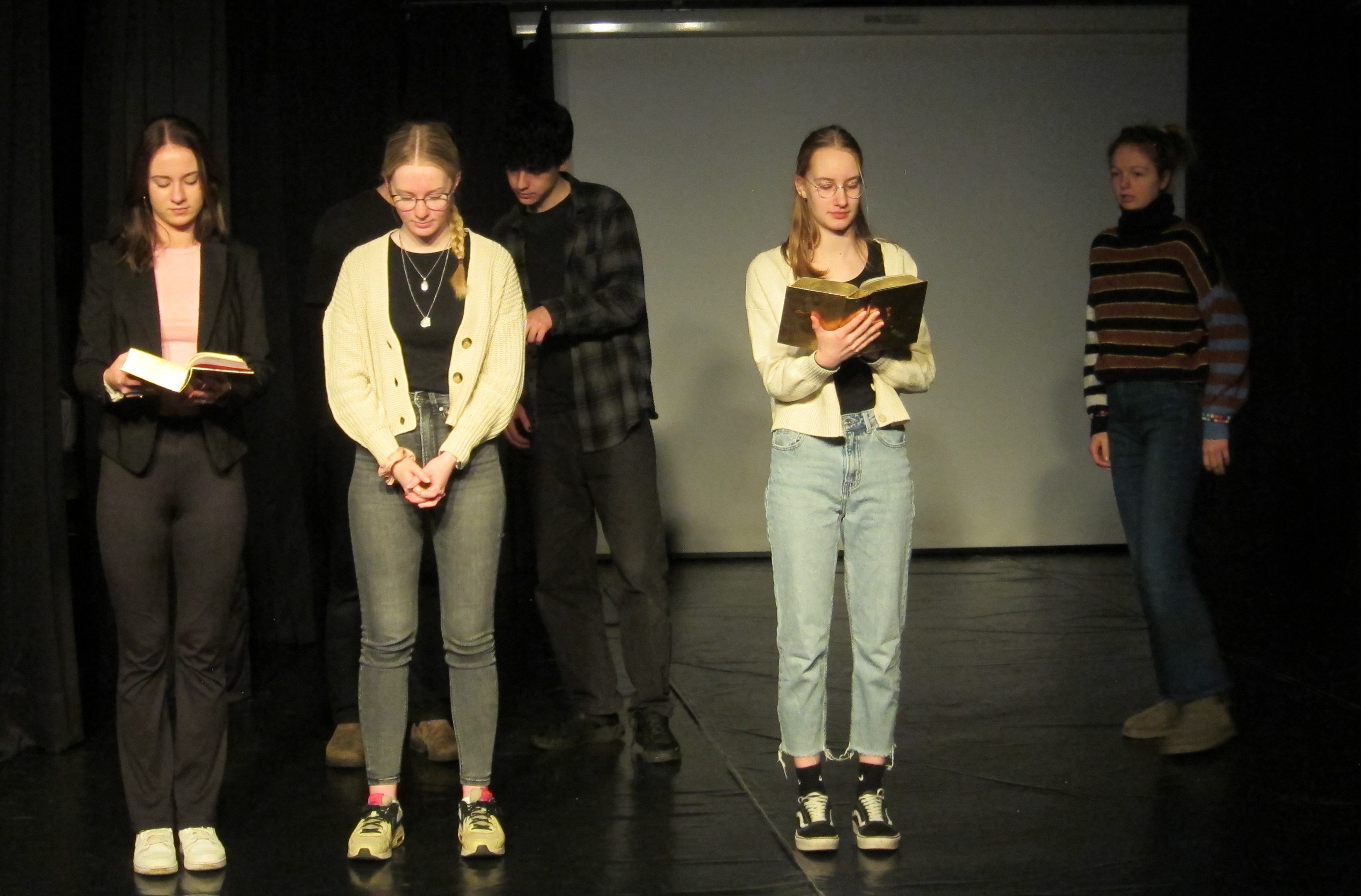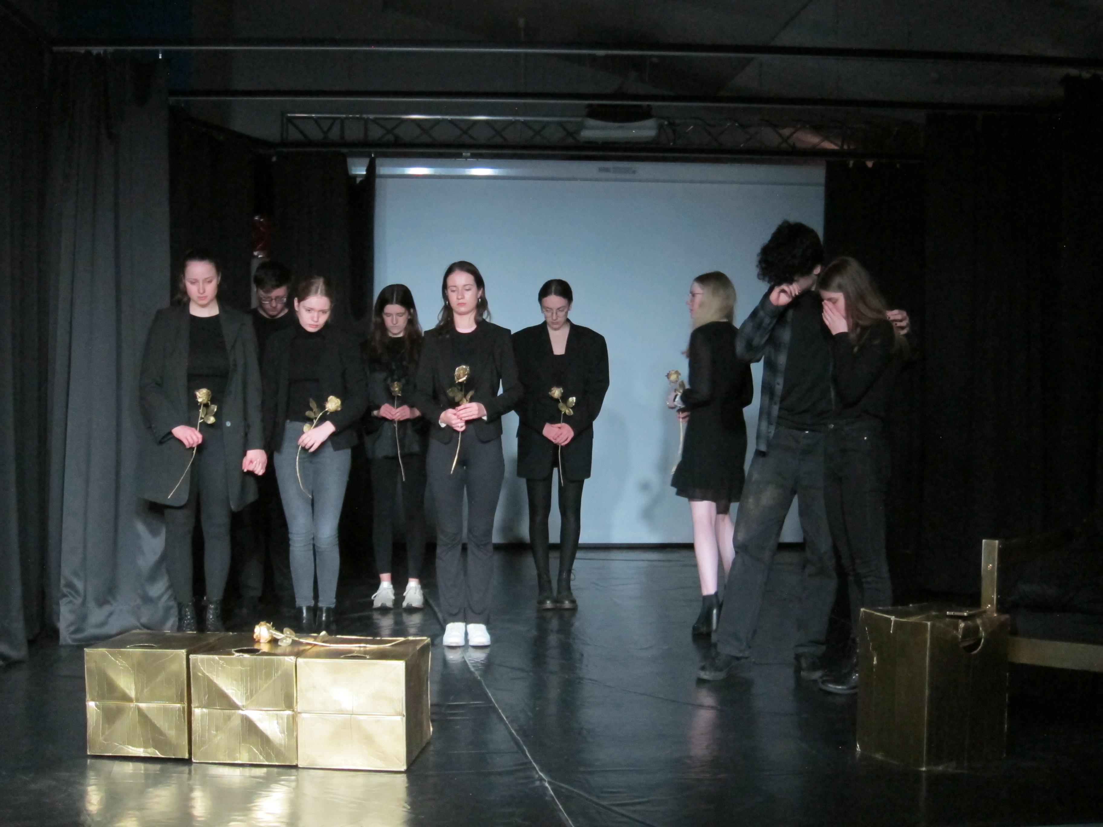 Der Q1-Jahrgang präsentierte "Viele Gesichter - und ich trug sie alle" auf der ausverkauften Studiobühne.