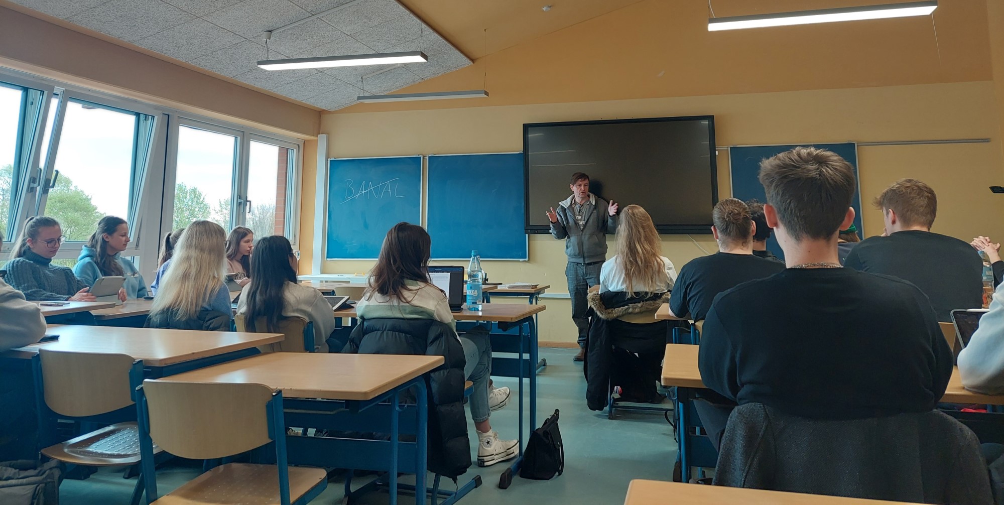 Mit genau diesen Fragen befasst sich aktuell die Q1 im Deutschunterricht. Und damit sie nicht immer nur theoretisch über Kunstschaffende und deren Rechte und Pflichten diskutieren müssen, gab es Ende April Inspiration und Gespräche mit einem Profi, einem Künstler.