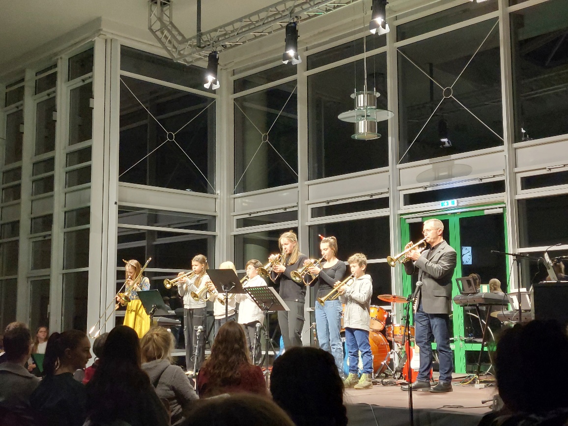 Als nächstes war die Orchester AG unter der Leitung von Frau Wichmann an der Reihe, die sich aus Groß und Klein zusammensetzt. Mit "High Hopes" und "Christmas Time" konnten sie das Publikum regelrecht mitreißen.