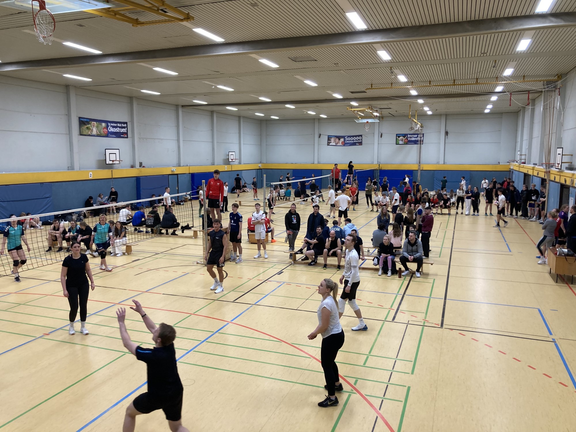 Vielleicht ist es die, trotz des sportlichen Ehrgeizes, harmonische und wenig verbissene Stimmung während der häufig spannenden Spiele, die neben den ca. 130 Teilnehmern und Teilnehmerinnen auch wieder zahlreiche Zuschauerinnen und Zuschauer in die Halle lockten. Entsprechend wurde lautstark für oder gegen die Lehrer oder die jeweiligen Favoriten Stimmung gemacht. Die Melange aus Teilnehmerinnen und Teilnehmern mit ihrem aktuellen oder vergangenen Bezug zur Schule und die damit einhergehende, tolle Atmosphäre ist das eigentliche Highlight in jedem Jahr.