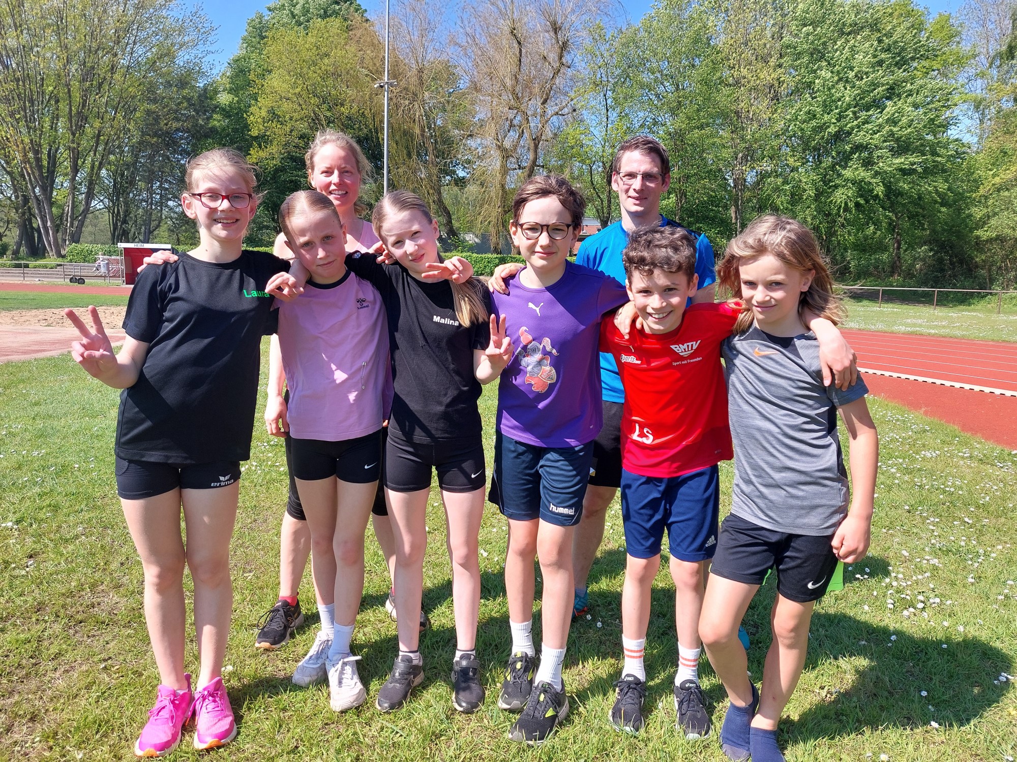 Am Donnerstag, den 2.5.24, haben sich drei Läuferinnen, drei Läufer, ein Elternteil und Frau Noske auf den Weg nach Pinneberg gemacht, um an dem Kreisentscheid für den Staffelmarathon auf Helgoland teilzunehmen.
