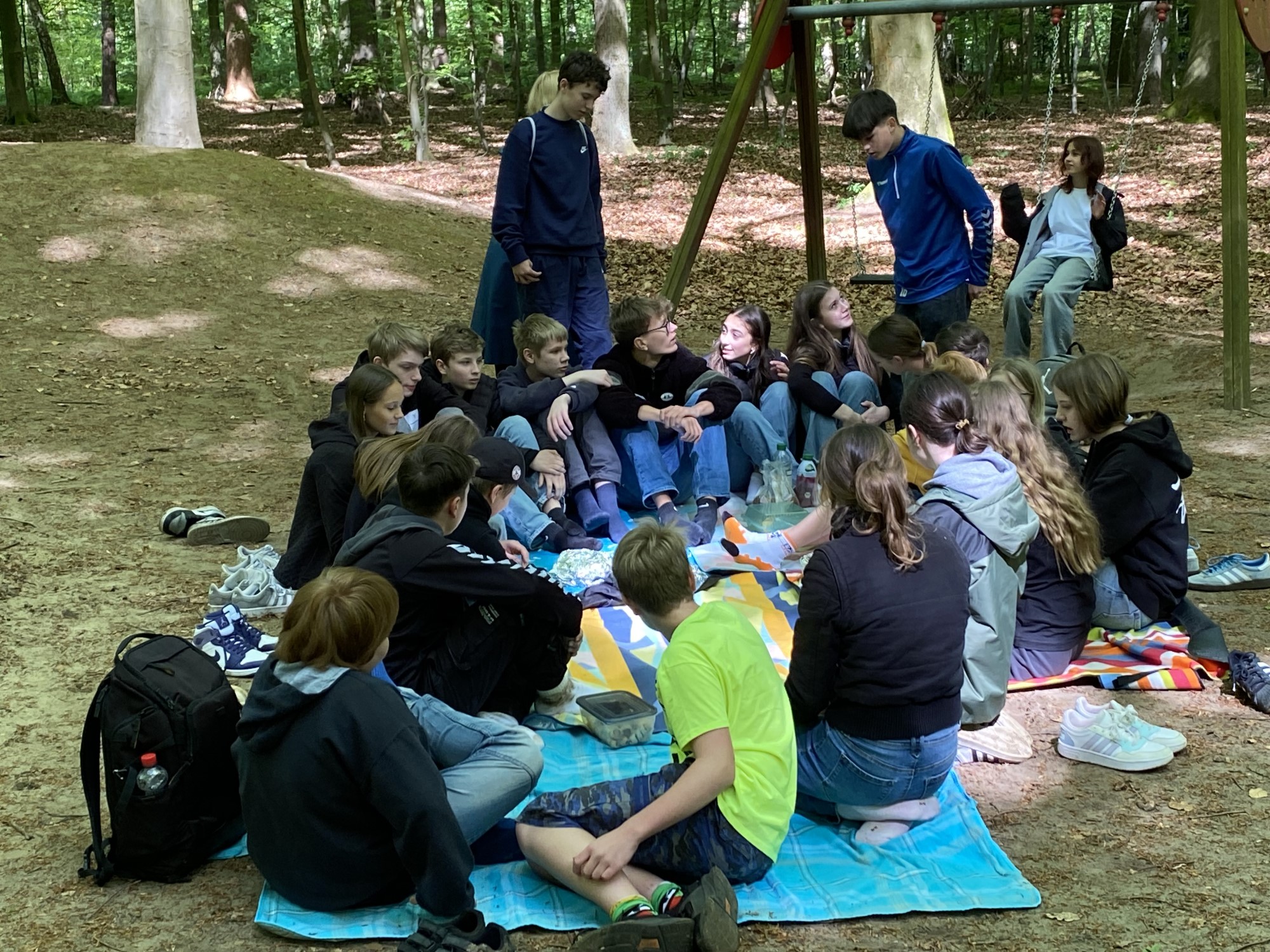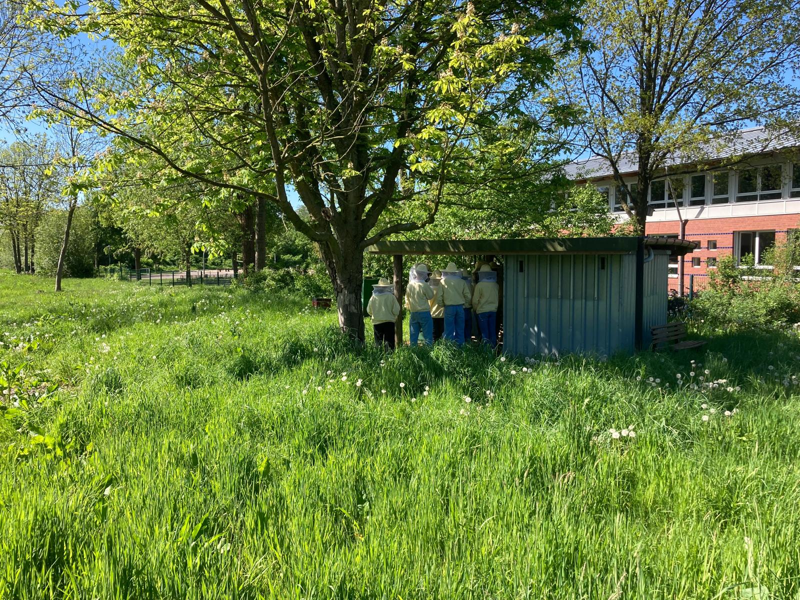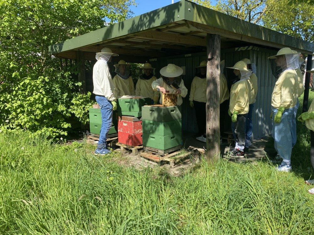 „Außer Haus“ unterwegs waren an dem sonnigen Mittwoch einige Klassen: Das Arboretum in Ellerhoop, das Himmelmoor in Quickborn, die Hamburger Hafencity, der Forst, aber auch ein Reyclinghof und eine Klär- und eine Biogasanlage waren Ausflugsziele verschiedener Klassen. Teils wurde es richtig „gefährlich“: Bei einer Imkerführung besichtigte die 8b Bienenstöcke und erlernte Bienenkunde vor Ort, ganz nah am Insekt. Frau Noske hat den Nachhaltigkeitstag ins Leben gerufen und zeigt sich wieder begeistert. „Die Projekte etablieren sich immer mehr und unsere Schüler:innen freuen sich richtig auf die Aktionen, die sie noch erwarten“, so die Organisatorin.