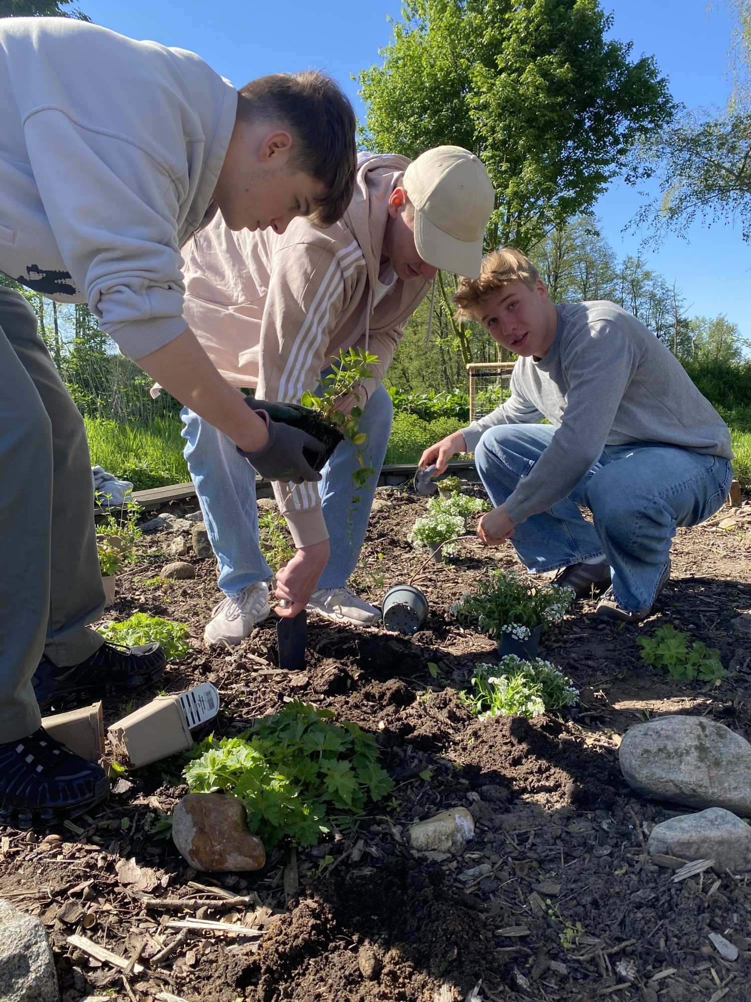 Generell gilt immer noch: Alle Klassenstufen sind beteiligt. Gartenarbeit, Schulhofgestaltung, Kochen und Backen, Imkertour, das Thema Recycling, alles sind mögliche Aktionen. Trotz der Routine liegt ein gespanntes Summen in der Luft, als das CFvWG am 8. Mai aufs Fahrrad steigt, Beete bepflanzt und vegane Rezepte zubereitet. Ein großer Aspekt des Tages: Aktionen rund um den Schulhof. Zwar wurden bereits Mitte April Obstbäume gepflanzt, trotzdem freuen sich Kräuter- und Staudenbeete über Zuwendung durch unsere Schüler:innen.