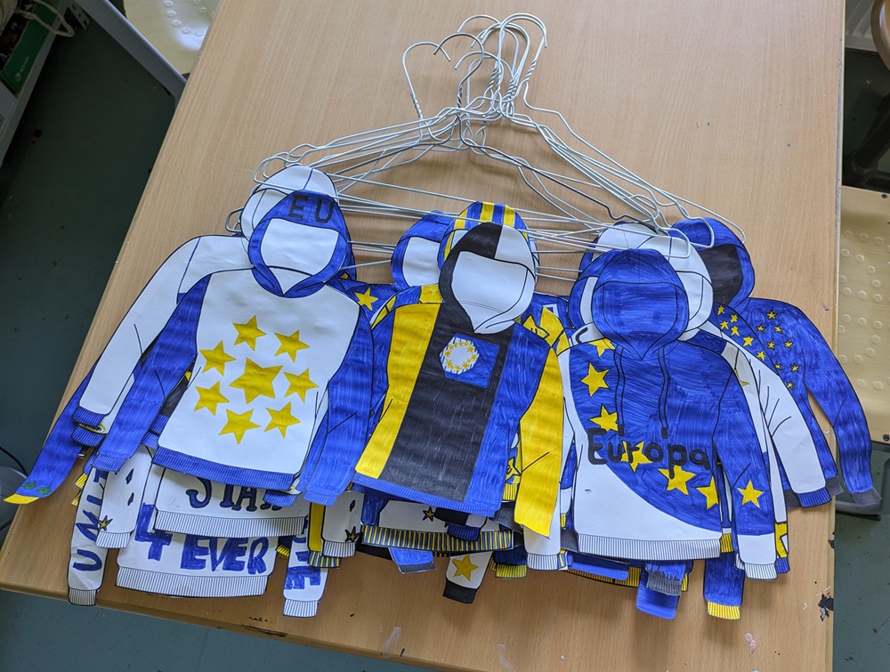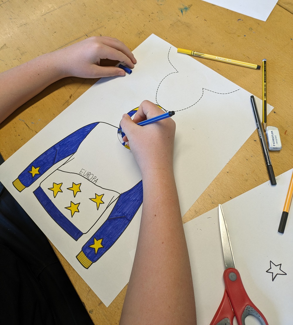 Die 7. Klassen hatten eine besonders vielfältige Mischung vor sich: So designten sie Hoodies mit Europadesign, lernten die Ursprünge der europäischen Sprachen kennen und befassten sich auch nochmal theoretisch mit den Besonderheiten des Sports in Europa.