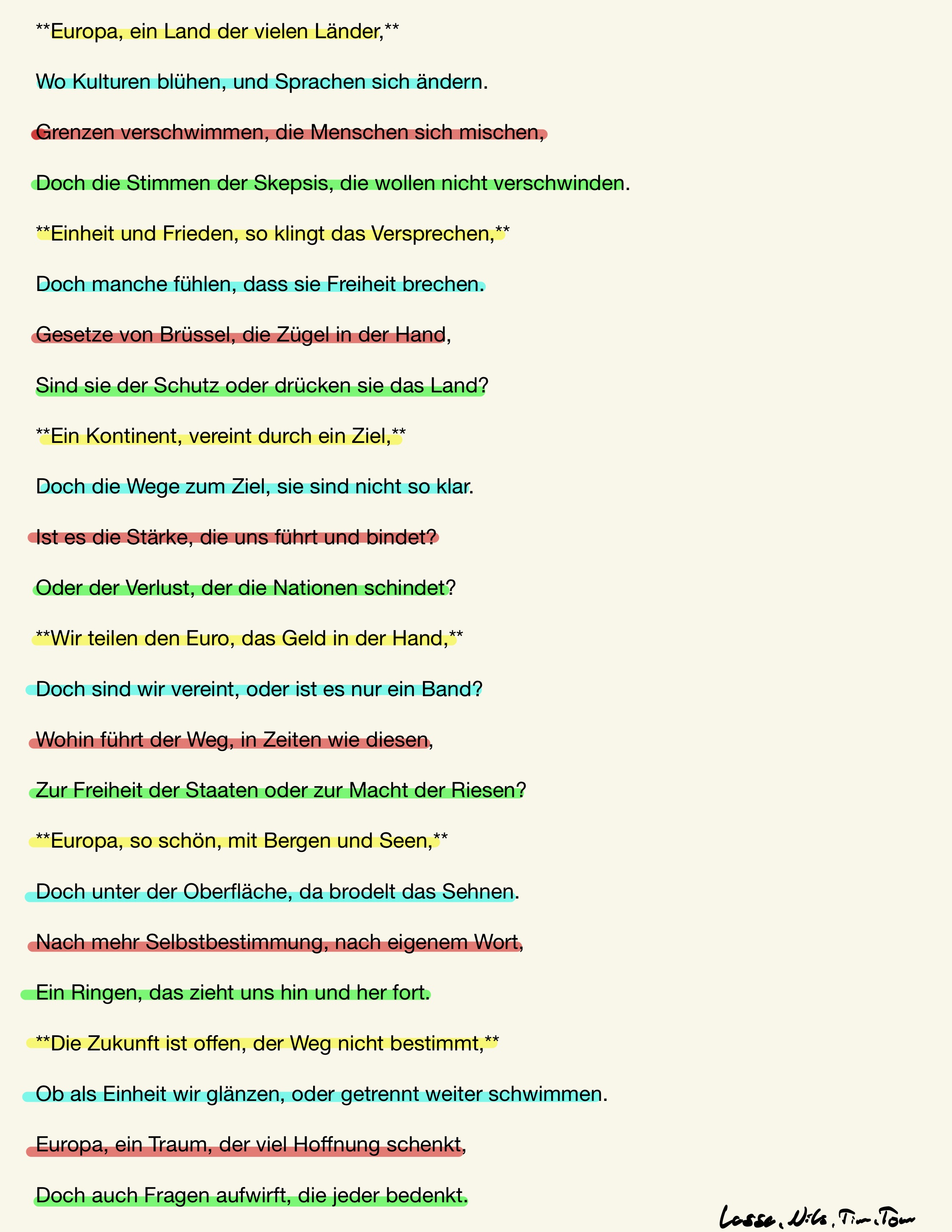 Unsere 9. Klassen wurden kreativ: Sie beschäftigten sich mit Europabildern - historisch, literarisch und musikalisch. Dabei verfassten sie eigene Texte, gepaart mit einer Zukunftsversion von Europa, und inszenierten ihre Ideen mit der Kulturbeauftragten Uli von Welt auf rhythmische Weise.