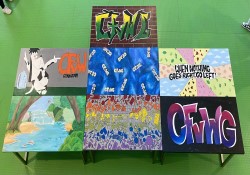 Die Pausenhalle zeigt sich neuerdings ungewohnt farbenfroh - diese schrillbunten Hingucker sind der Grund. Der 10. Jahrgang wurde im Kunstunterricht kreativ.